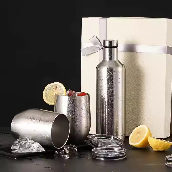 Christmas Gift Set 17oz 500ml Stainless Steel Sublimation Wine Flask Bottle and 12oz Wine Tumbler Mug Set Water Bottles